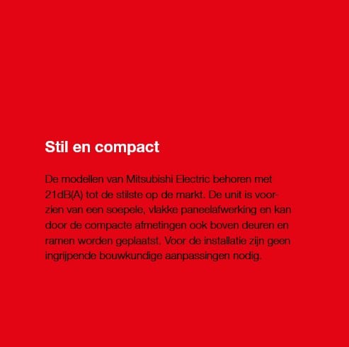 Mitsubishi Electric staat bekend om zijn betrouwbaarheid, stille werking en lange levensduur.
