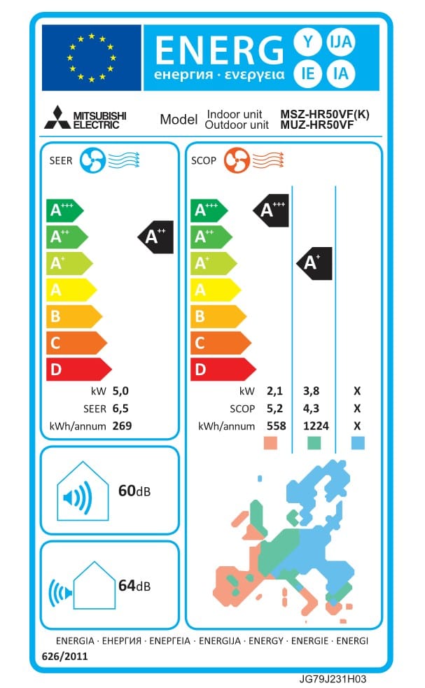 - Energieklasse: A++ (koelen) / A+ (verwarmen)