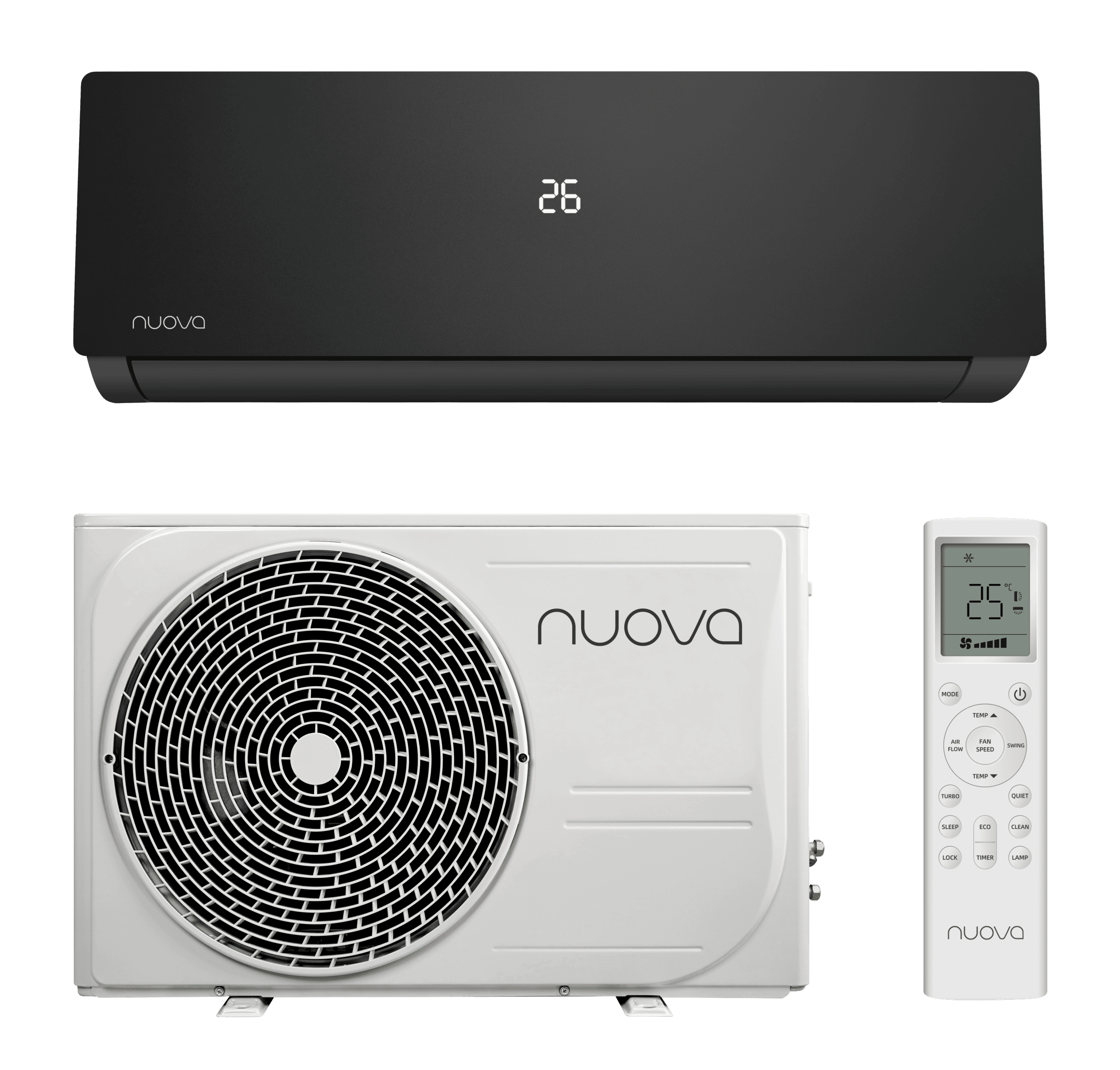 De Nuova Infinity AI Smart 2,5kW airco set single split zwart is de ideale oplossing als je een airco wil zelf plaatsen in België of Nederland en tegelijk kiest voor een moderne en stijlvolle afwerking.