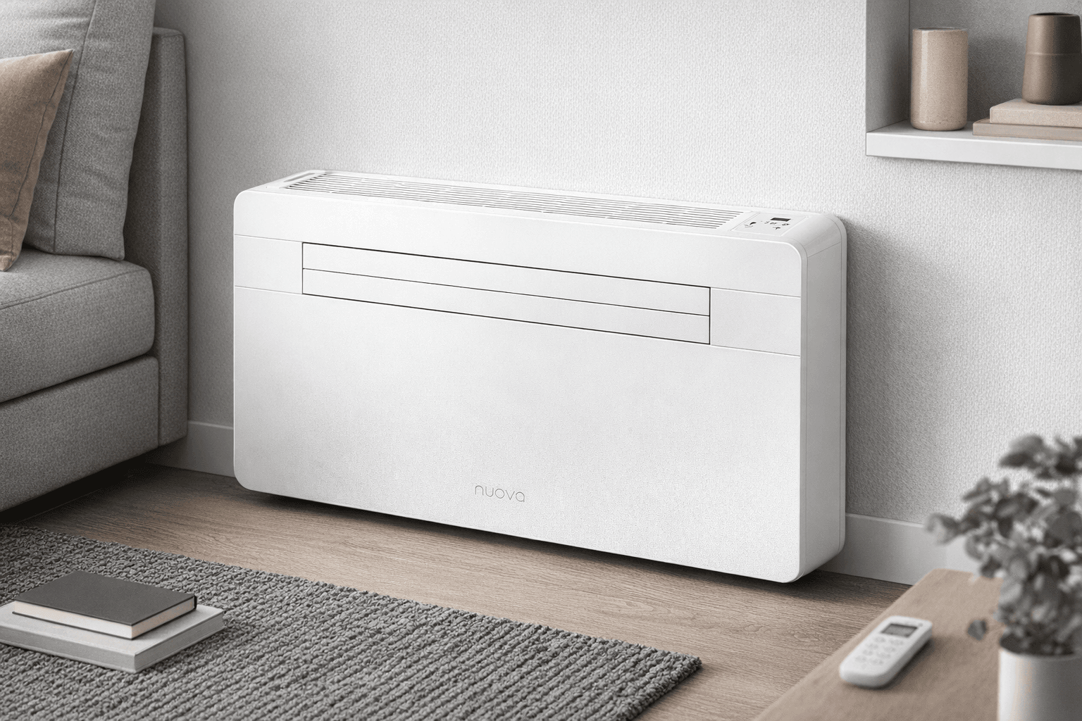 De monoblock straalt verfijning uit met een slank ontwerp van slechts 19,8 cm diep. Dit compacte design maakt de monoblock unit uiterst veelzijdig en eenvoudig te installeren op de plek van een oude radiator. Met deze mogelijkheid kun je de airco zonder buitenunit naadloos integreren in je interieur, zonder concessies te doen aan de stijl. Het biedt een ideale oplossing voor het upgraden van je ruimte en het creëren van een aangename koelervaring, zonder de noodzaak van een externe buitenunit. Ontdek het perfecte samenspel van functionaliteit en esthetiek met onze Unitless airco zonder buitenunit.